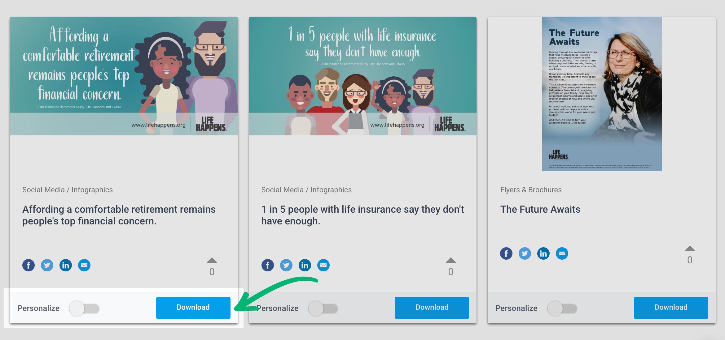 Many of the available resources available can be downloaded for use outside of Life Happens Pro. The following types of resources are currently available to be downloaded: